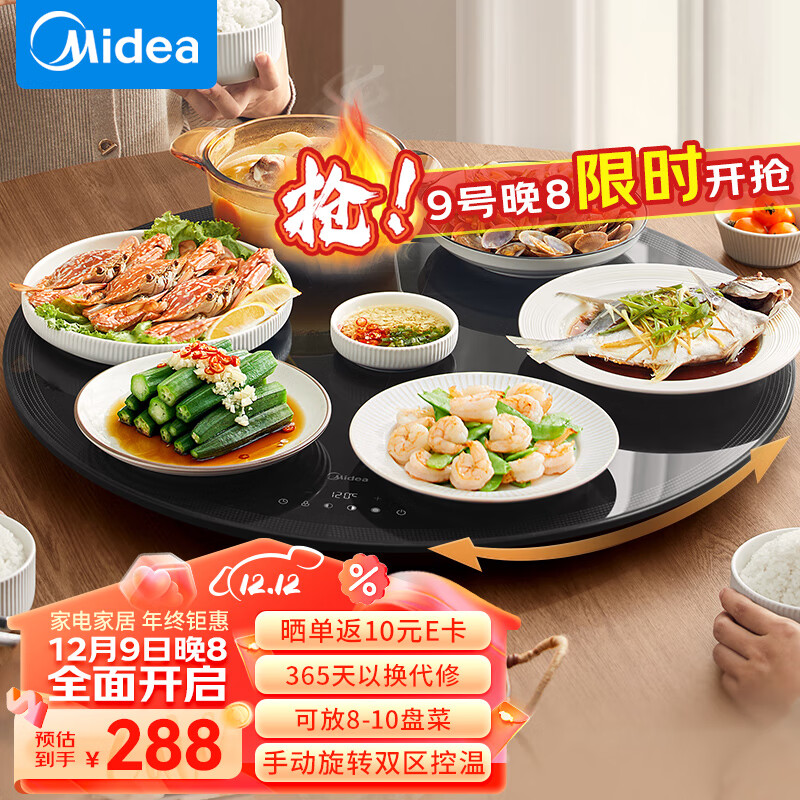 美的(Midea)暖菜板 饭菜保温板热菜板 加热桌垫菜板 发酵解冻定时童锁加热板(圆形)可旋转HBU60Y1价格:288.00元!