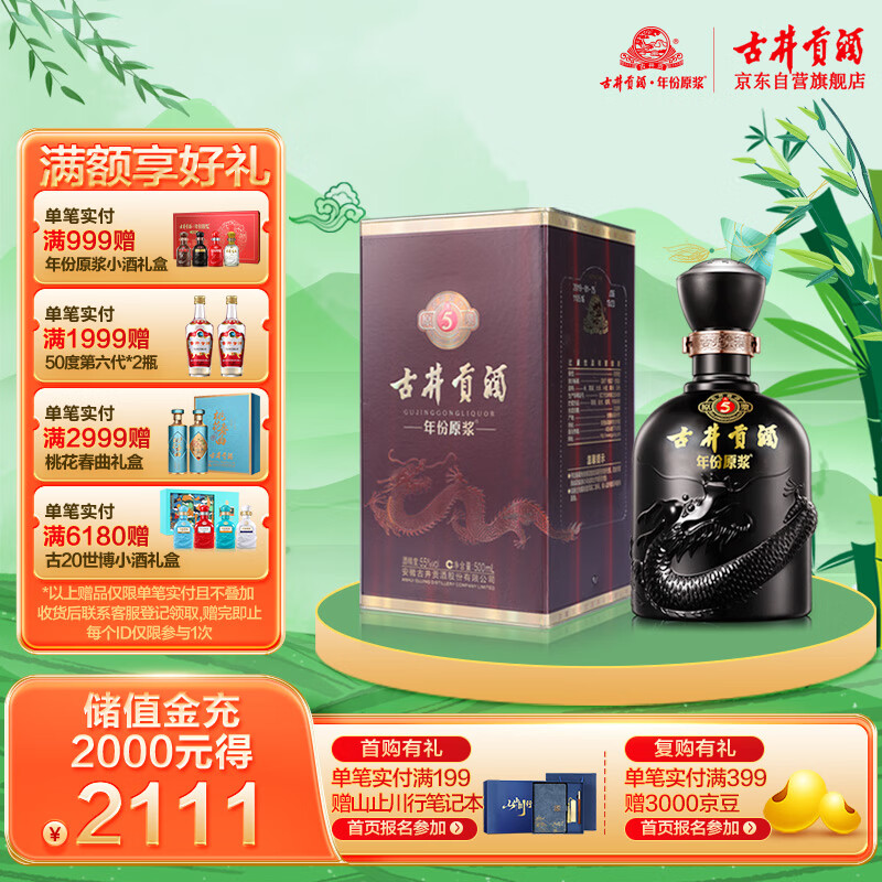 古井贡酒年份原浆 古5 浓香型白酒55度 500ml*1瓶 单瓶装价格:176.47元!