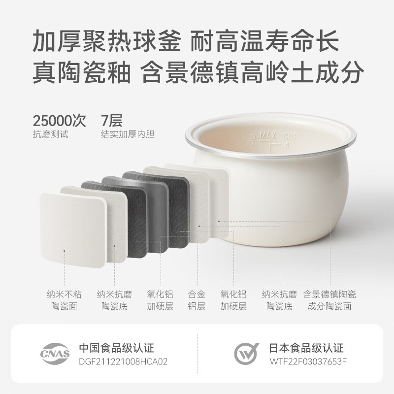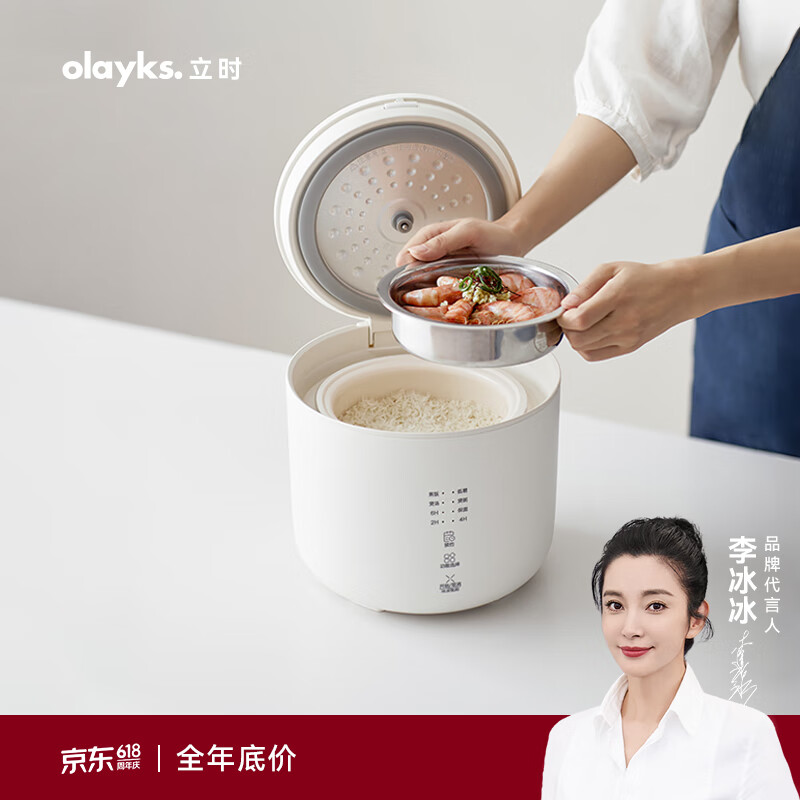 olayks立时 电饭煲 电饭锅 米饭锅 陶瓷釉球釜内胆多功能家用不粘锅智能杂粮饭 2升2-3人带蒸笼价格:179.00元!
