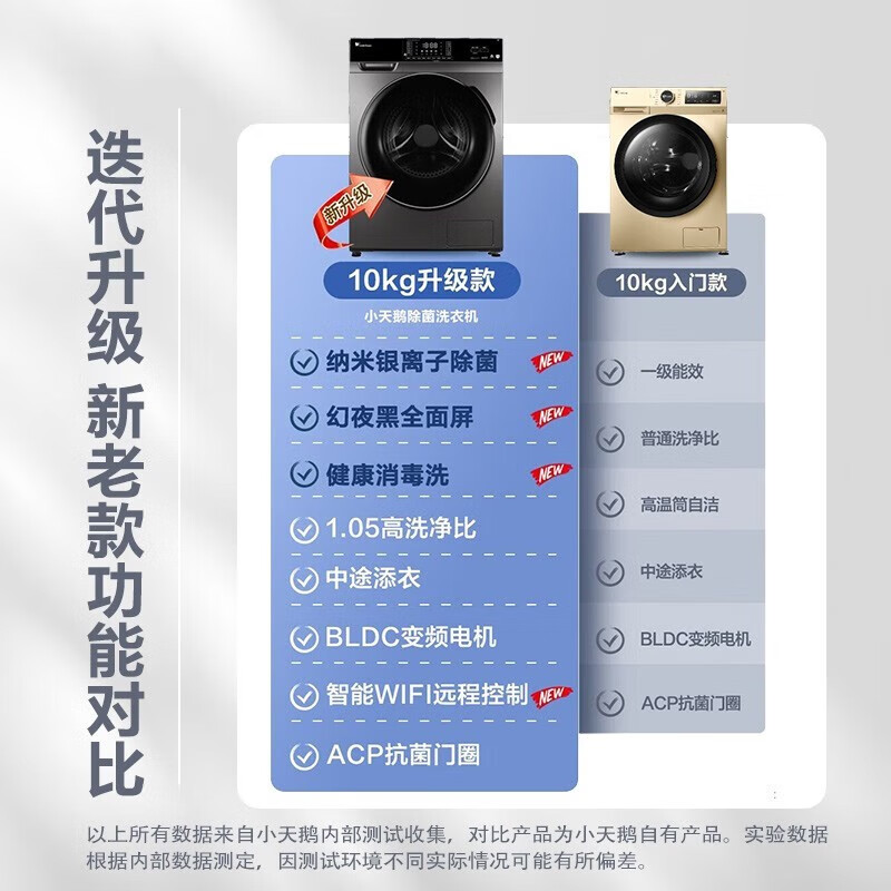 小天鹅(LittleSwan)滚筒洗衣机全自动 10公斤家用大容量变频智能家电 纳米银离子除菌婴儿服羽绒服洗TG100V65WADG-Y1T 除菌滚筒价格:1799.00元!