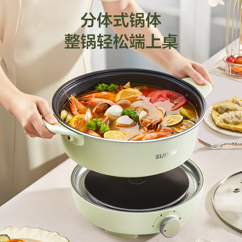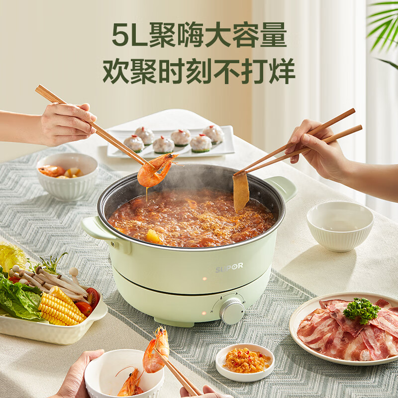 苏泊尔(SUPOR)电火锅 分体式可拆洗 家用5L大容量火锅专用锅 电煮锅 电炒锅多功能一体锅不粘锅 H30YK839价格:194.00元!