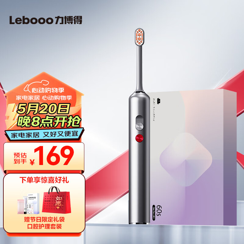 力博得(Lebooo)电动牙刷充电式全自动智能震动牙刷 成人情侣款 母亲节节日礼物送男友/女友 大洁力 钛金灰价格:199.00元!