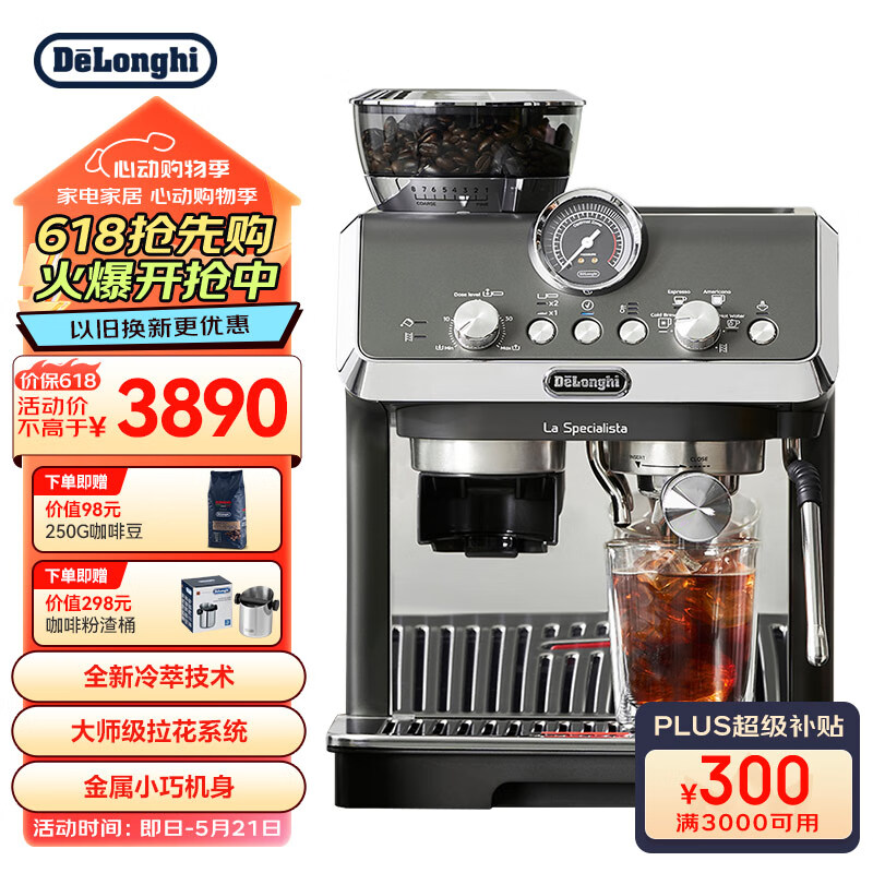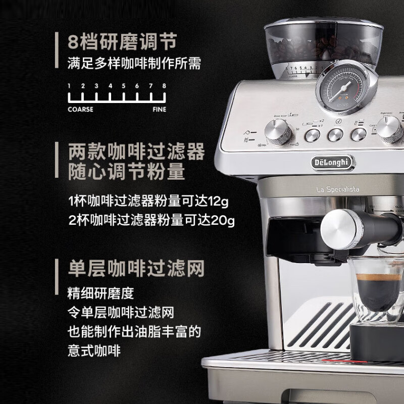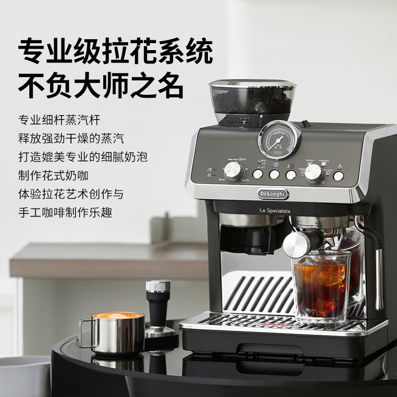 德龙(Delonghi)咖啡机 半自动咖啡机 冷萃技术 意式家用泵压式 一体式研磨器 EC9255.BK 黑色 乐队的夏天款价格:4290.00元!