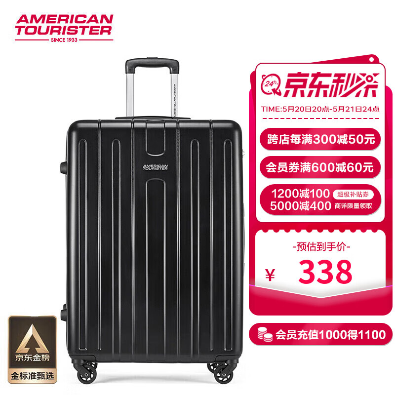美旅箱包时尚条纹行李箱男女大学生旅行箱大容量拉杆箱TC3黑色24英寸价格:418.00元!
