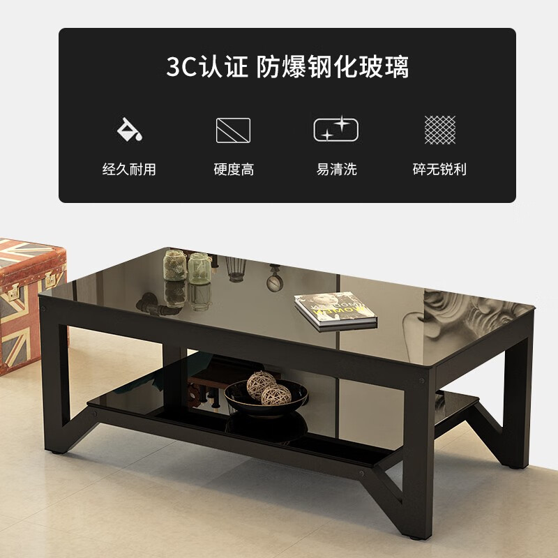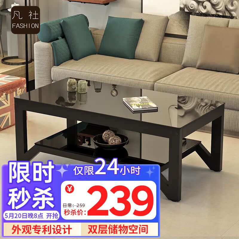 凡社 茶几简约 双层钢化玻璃茶几桌 小户型客厅加粗桌脚小桌子价格:227.00元!