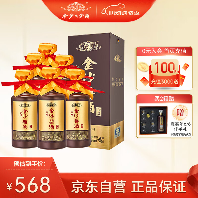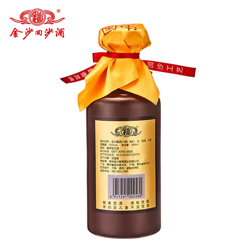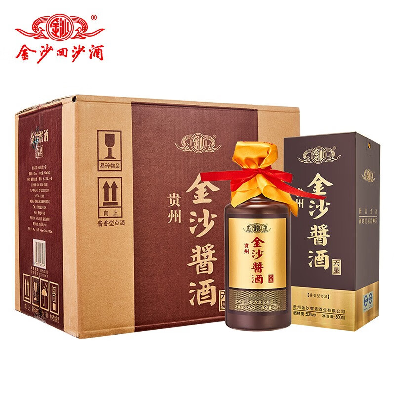 金沙回沙酒 酱酒六星 酱香型白酒 53度 500ml*6瓶 整箱装 纯粮食坤沙价格:598.00元!