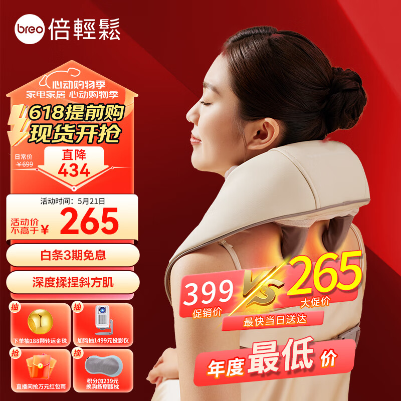 倍轻松(breo)N5mini颈椎按摩器按摩披肩肩颈按摩器肩膀斜方肌腿腰颈部按摩仪器脖子 价低LJQ 520情人节礼物价格:428.00元!