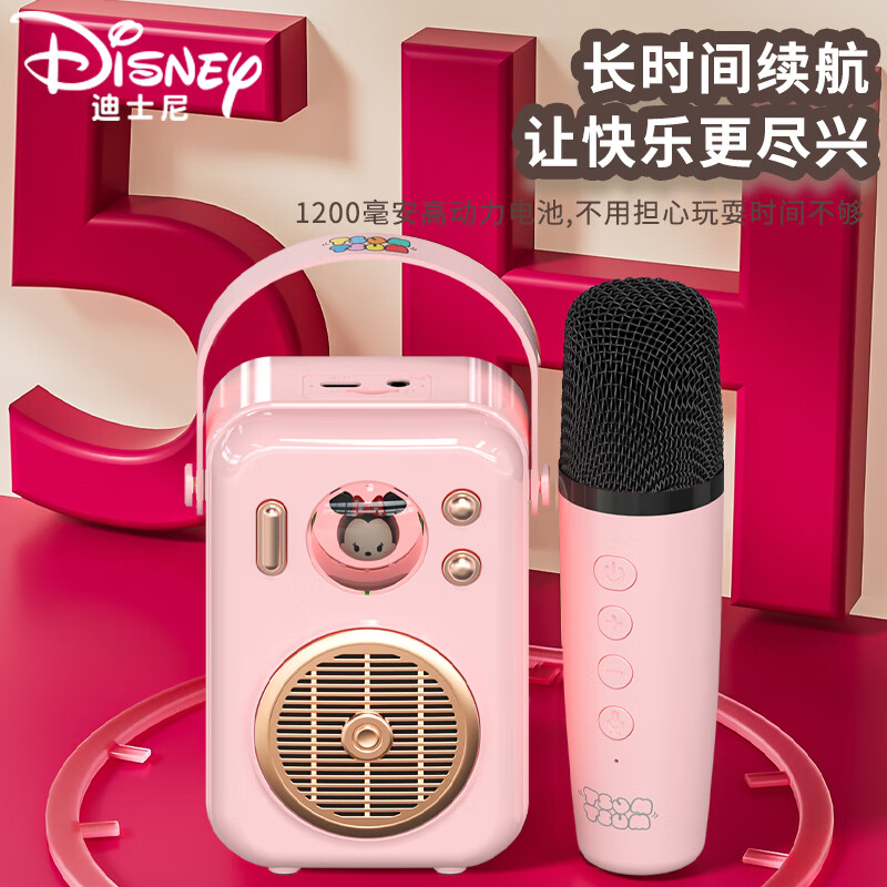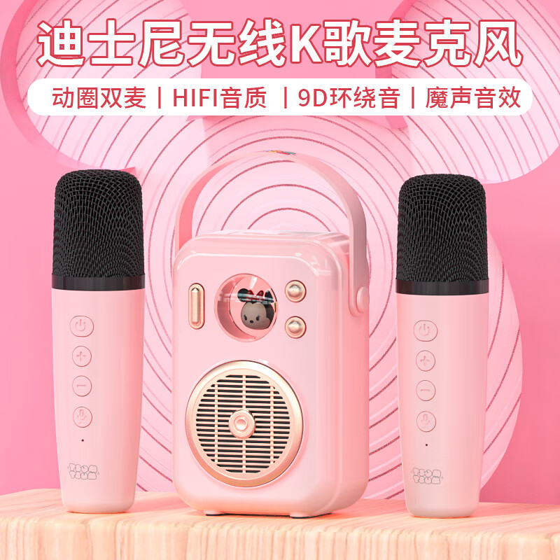 迪士尼(DISNEY)麦克风k歌音箱 话筒音响一体 无线蓝牙k歌宝儿童家庭ktv 礼物礼品 KM-12 粉色双麦价格:169.00元!