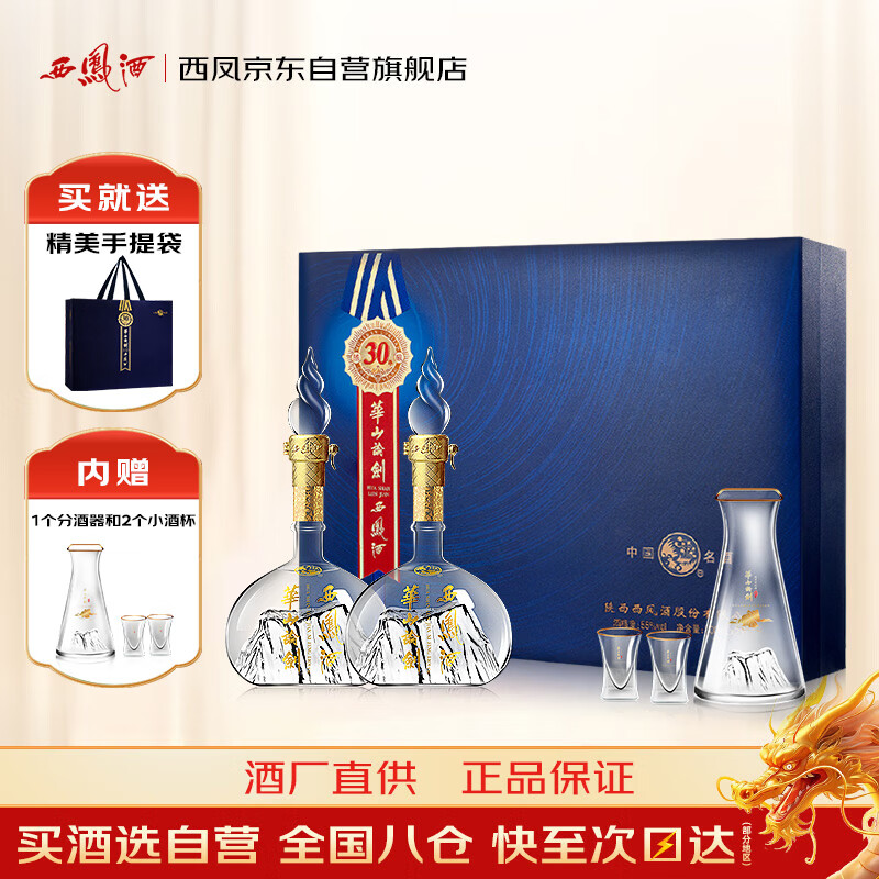 西凤酒 华山论剑30年 55度 500ml*2瓶 礼盒装 凤香型白酒价格:858.00元!