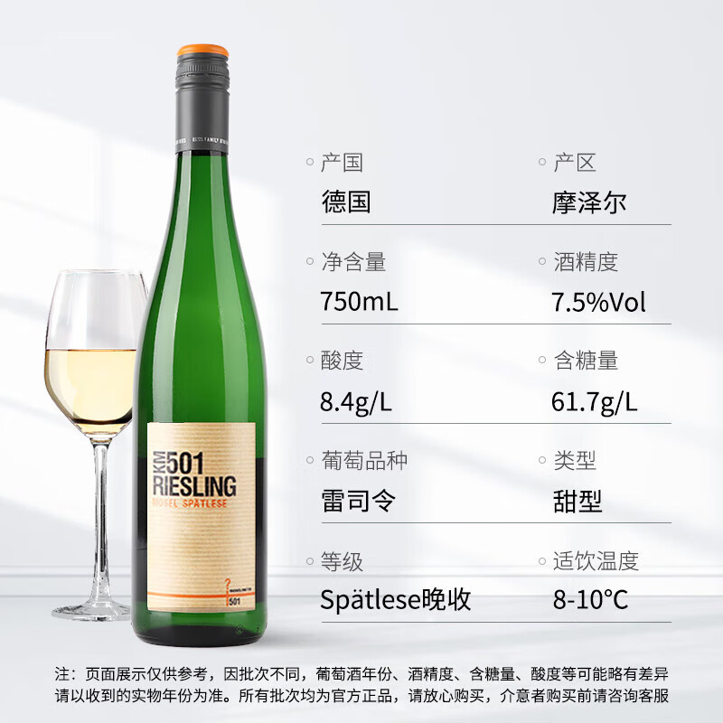 商品名称:雷司雷司KM501摩泽尔晚收级雷司令白葡萄酒