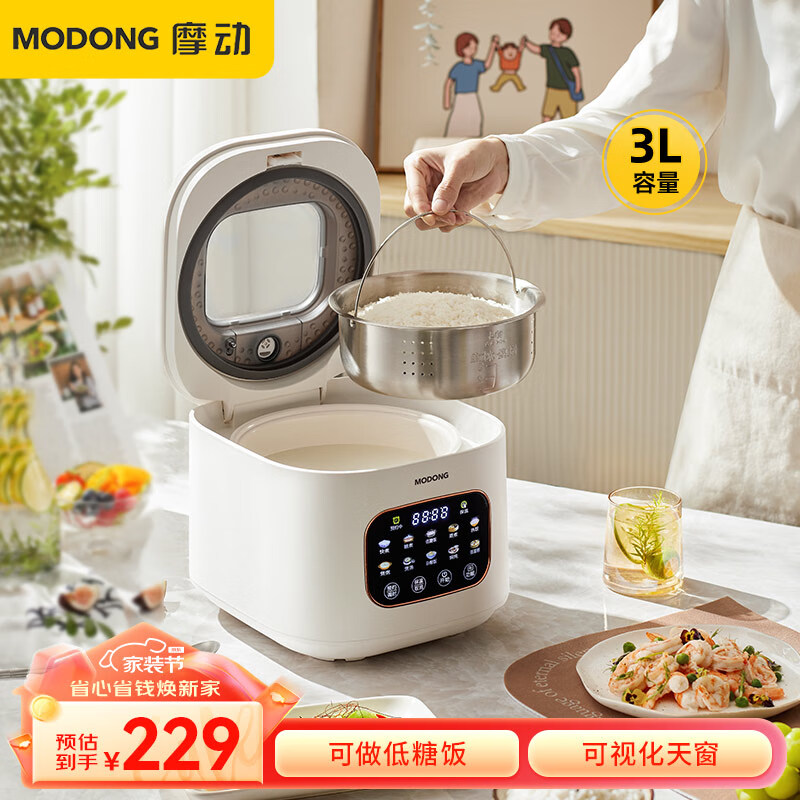 摩动电饭煲低糖可视上盖3升饭煲米汤分离智能家用多功能沥米饭沥糖蒸饭煮饭锅不粘锅价格:229.00元!