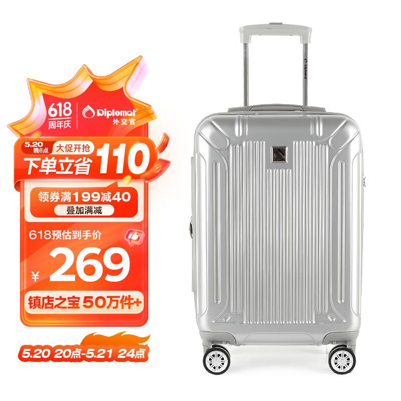 Diplomat外交官行李箱20英寸扩充层拉杆箱男旅行箱登机密码箱女TC-6012银价格:379.00元!