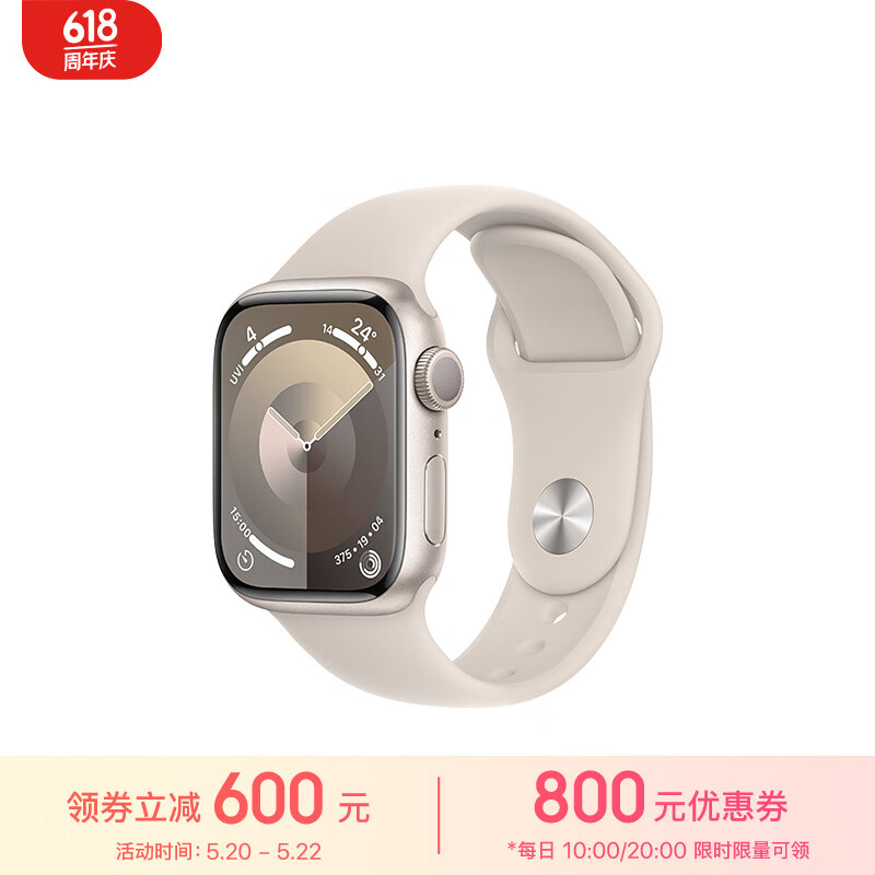 Apple/苹果 Watch Series 9 智能手表GPS款41毫米星光色铝金属表壳 星光色运动型表带M/L MR8U3CH/A价格:2999.00元!