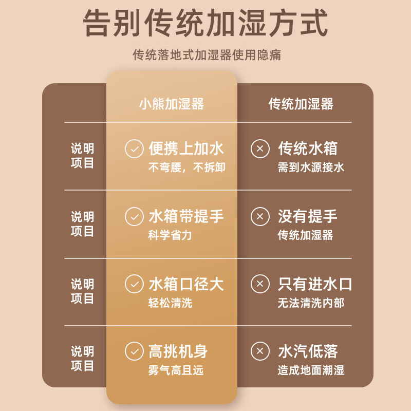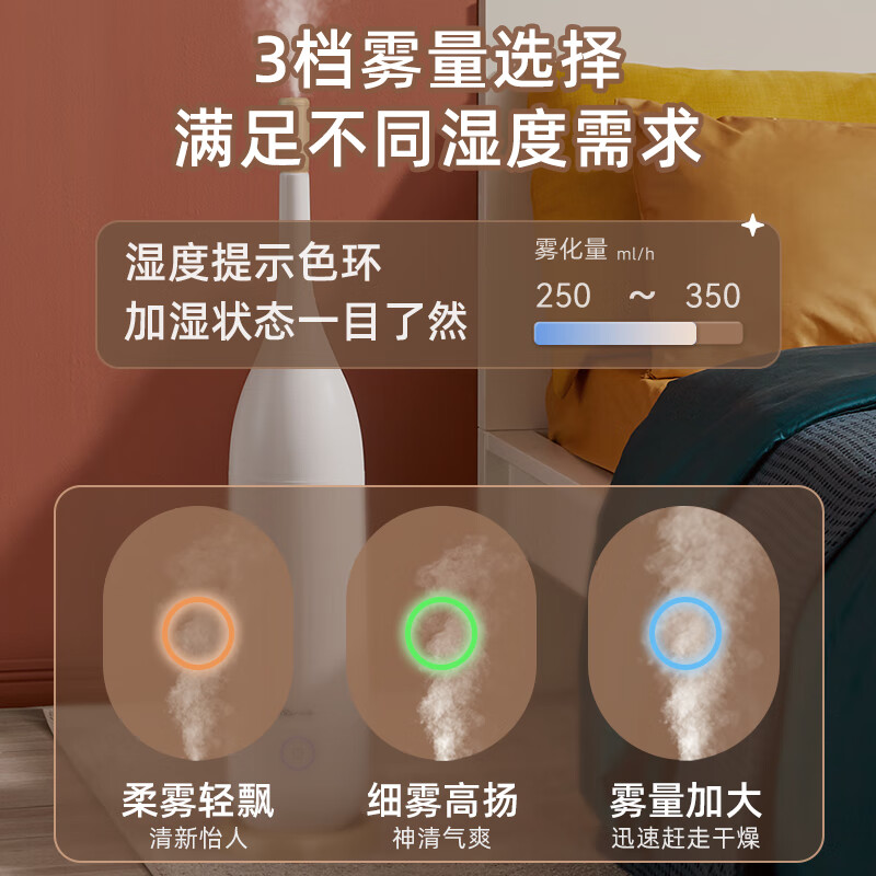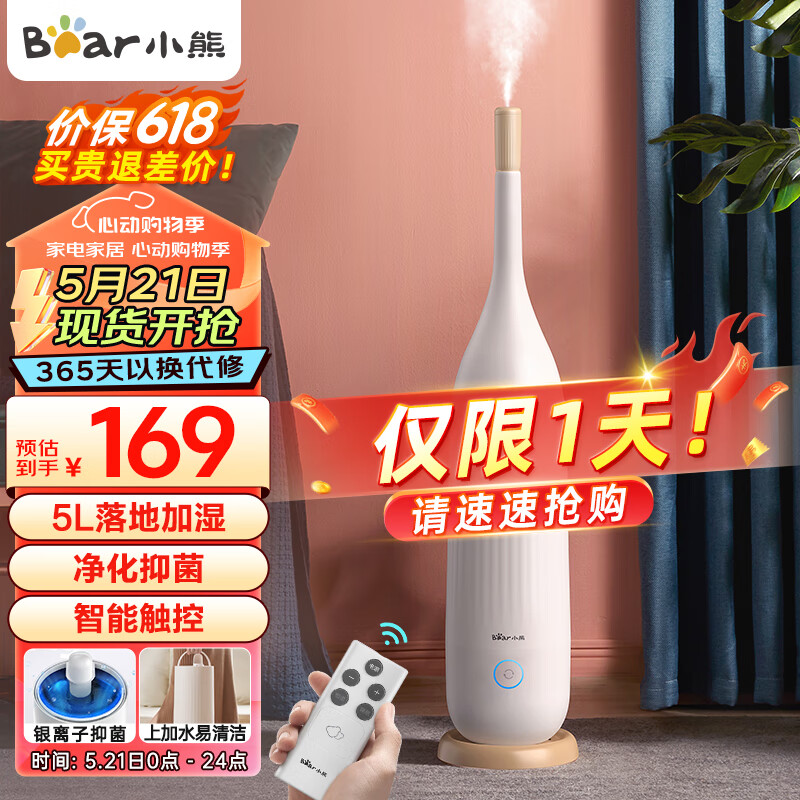 小熊(Bear)加湿器卧室轻音婴儿 办公室客厅迷你空气加湿器大雾量 低噪香薰机 落地上加水 5升巨量 JSQ-E50T1价格:169.00元!