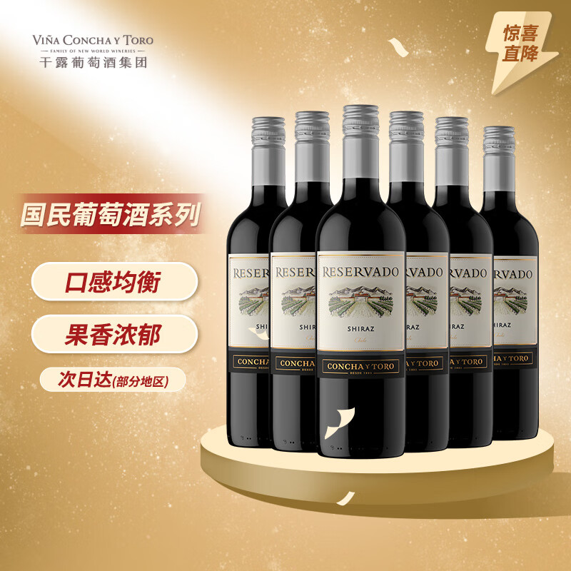 Concha y Toro干露珍藏西拉干红葡萄酒750ml*6瓶整箱 智利进口热红酒价格:175.00元!