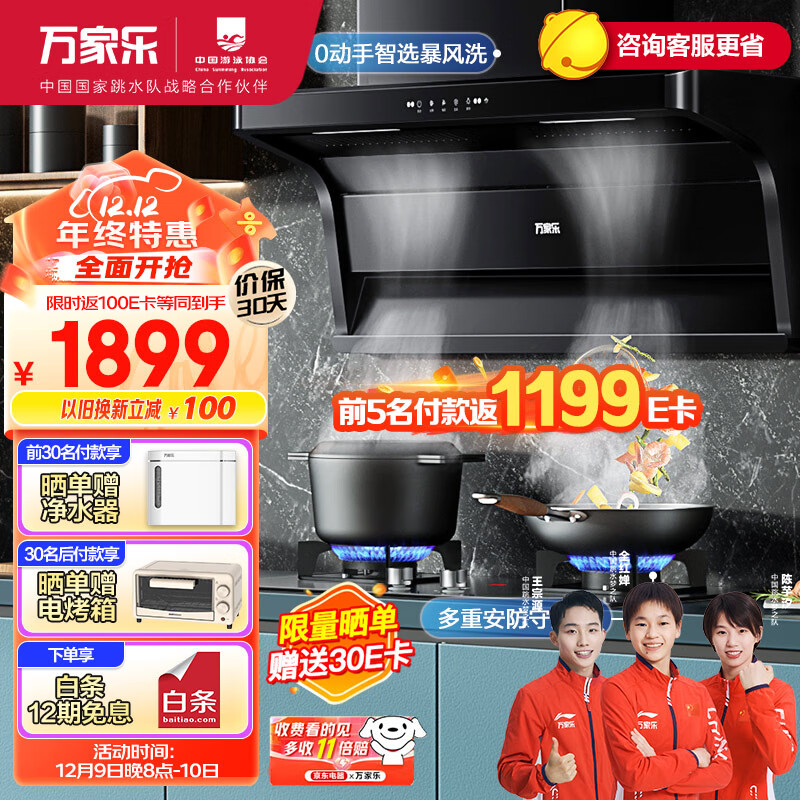 万家乐 抽油烟机 顶侧双吸油烟机23m3/min自清洗挥手智控烟灶套装高温防烫燃气灶具套装AK6+AY4天然气价格:2198.98元!