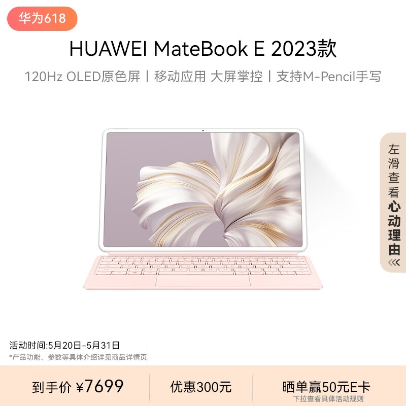 HUAWEI MateBook E 华为二合一平板电脑笔记本屏办公学习12代酷睿EVO认证i7 16+1TB白+粉键盘价格:7699.00元!