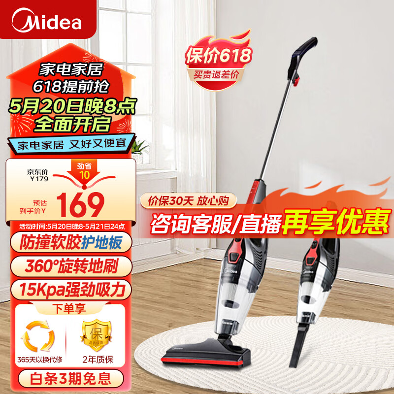 美的(Midea)吸尘器U1 家用手持立式有线吸尘器 二合一强劲吸力价格:169.00元!
