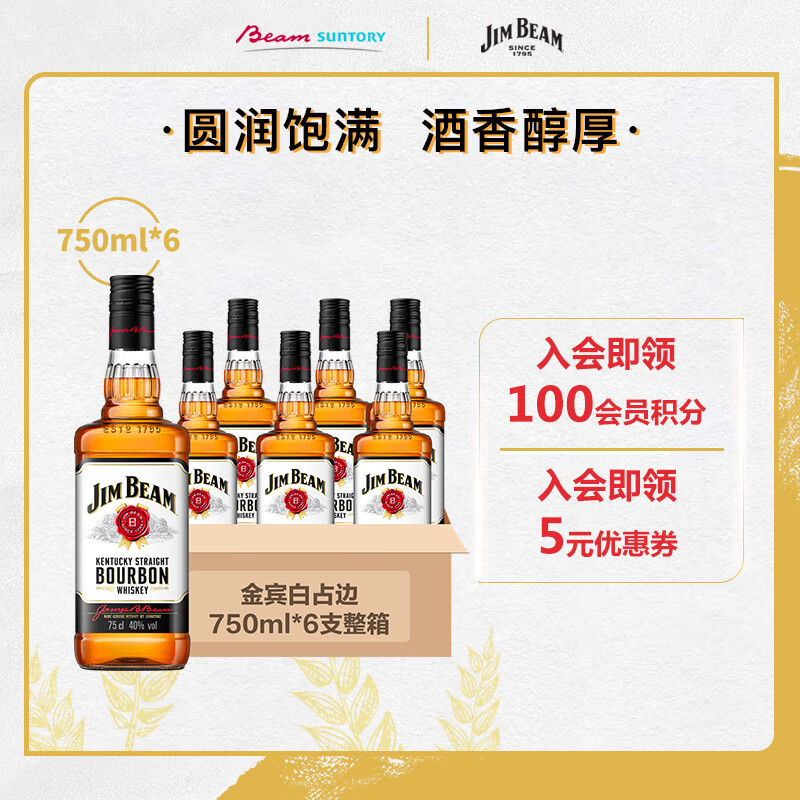金宾(Jim Beam)波本 威士忌 白占边 调和型 洋酒 750ml*6 整箱装价格:485.00元!