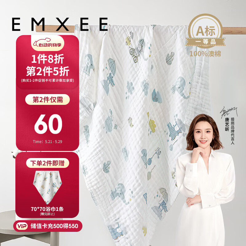 嫚熙(EMXEE)婴儿浴巾 新生儿纱布超柔棉春夏洗澡儿童专用 雨夜童话105*105cm价格:119.90元!