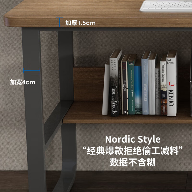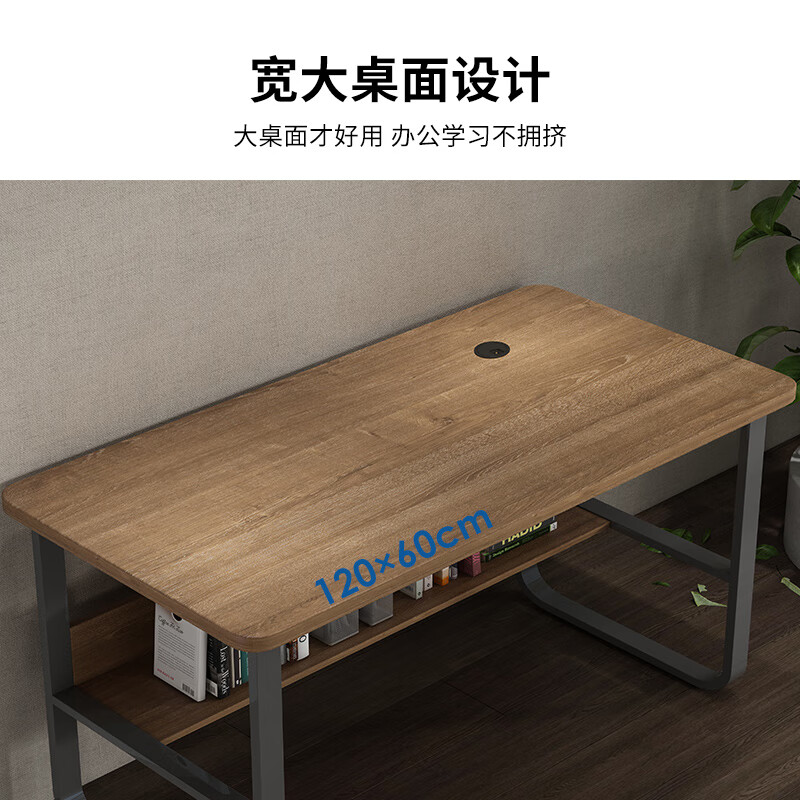 木以成居 电脑桌 带穿线孔简易学习书桌双层书架桌子橡木色 120*60CM价格:165.90元!