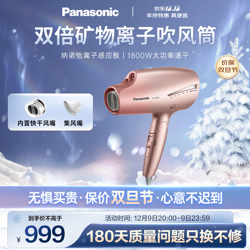 松下(Panasonic)电吹风机大功率送老婆女友高速大风力折叠便携纳诺怡负离子吹发护发电吹风筒EH-JNA9H粉价格:1199.00元!