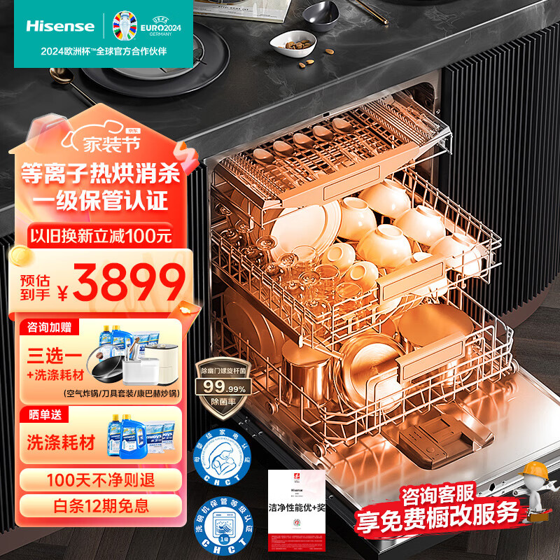 海信(Hisense)洗碗机15套 母婴级四星消毒 一级水效分区洗 一级长效保管 独立式嵌入式家用 涡扇热风烘干 C507i价格:3899.00元!