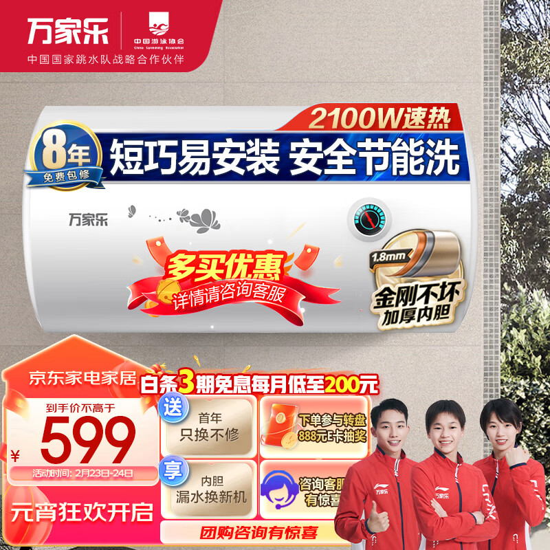 万家乐 60升家用电热水器 2100W速热 加长防电墙 经济节能下潜加热 抗腐耐用小巧易操控D60-H111B价格:593.00元!