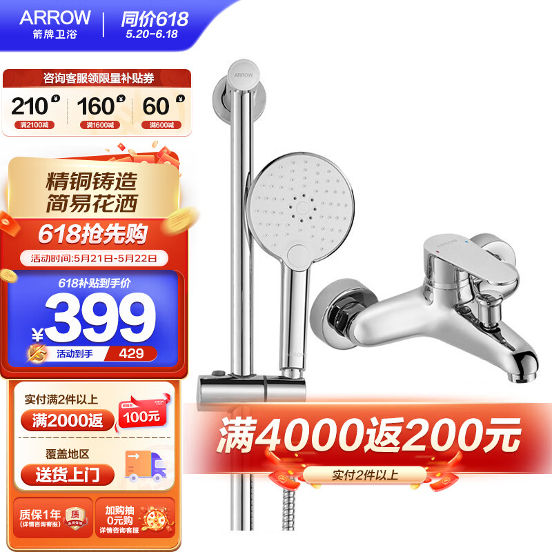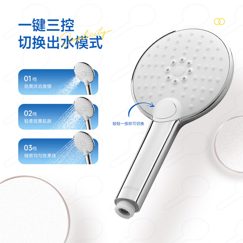 箭牌(ARROW)简易淋浴花洒 家用浴室挂墙式银色手持沐浴器喷头可升降AE3201M价格:609.00元!