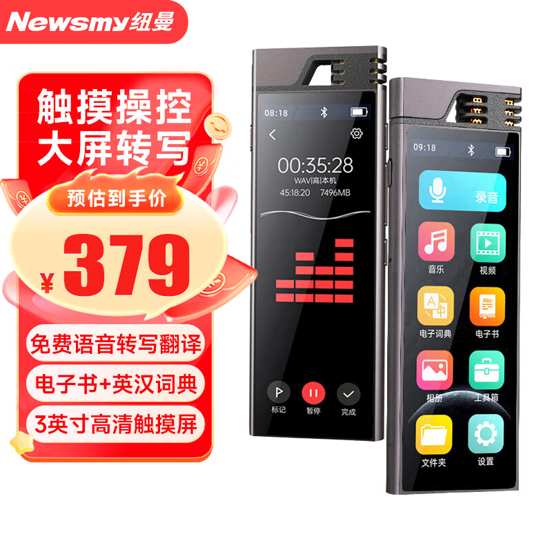 纽曼智能录音笔 V39 实时录音转文字 16G+云存储 触控大屏 商务会议学习培训 同声传译 录音器 灰价格:399.00元!