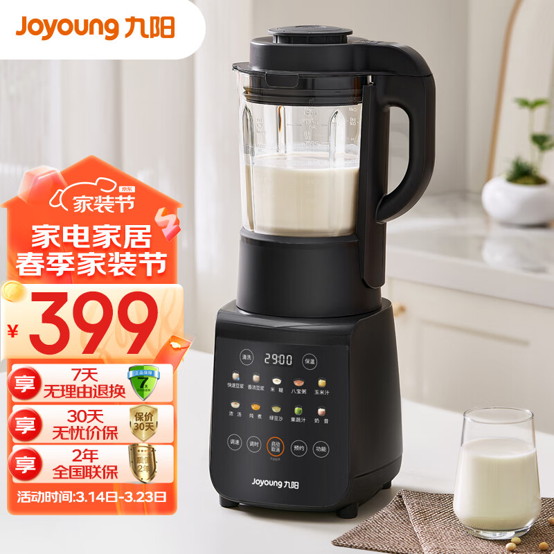 九阳破壁机家用 免滤豆浆机 1.75L大容量 榨汁机破壁机降噪预约加热早餐机辅食机 L18-P306价格:399.00元!