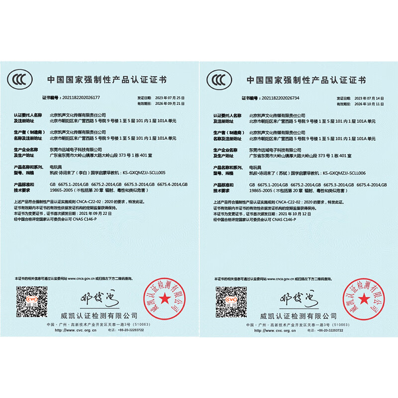 凯叔讲故事KS-GXQMZJJ-SCLL005;KS-GXQMZJJ-SCLL006配置参数: