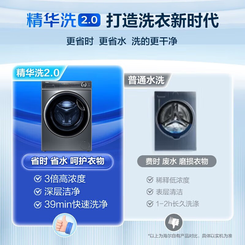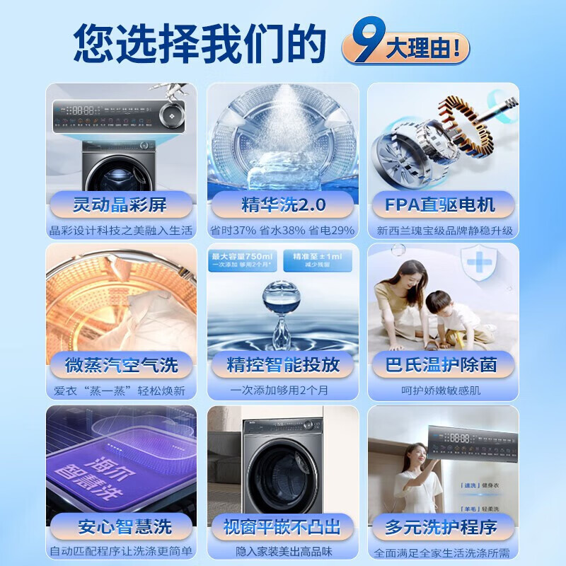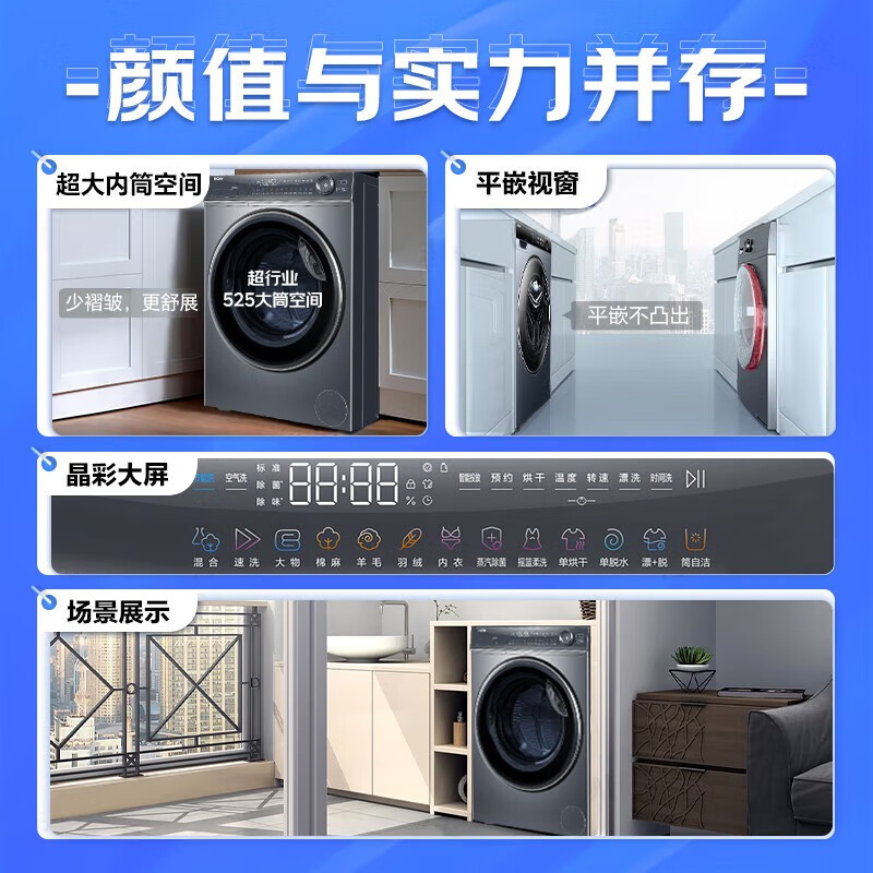 海尔滚筒洗衣机 10公斤全自动精华洗2.0 洗烘一体机 直驱变频超薄平嵌 智能投放晶彩屏 以旧换新HBD66S价格:3699.00元!