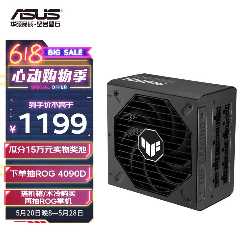 华硕(ASUS)TUF GAMING 装弹手1000W 金牌全模组电源 原生ATX3.0/PCB涂层/80PLUS金牌认证/Pcie 5.0/压纹线价格:1199.00元!