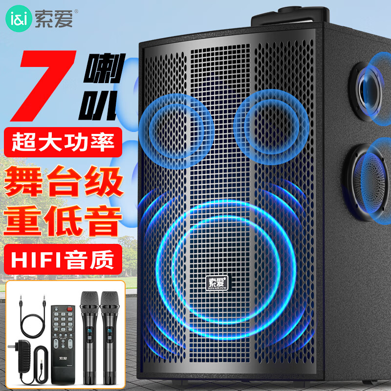 索爱(soaiy)SA-X77大功率 7喇叭重低音广场舞音响移动家用户外K歌蓝牙拉杆便携式音箱扩音器带无线话筒15英寸价格:1099.00元!
