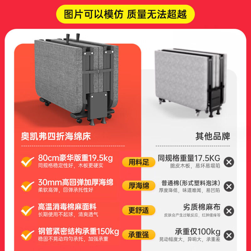奥凯弗折叠床午休单人床办公室午睡床四折海绵床医院陪护床木板床 80cm价格:439.00元!
