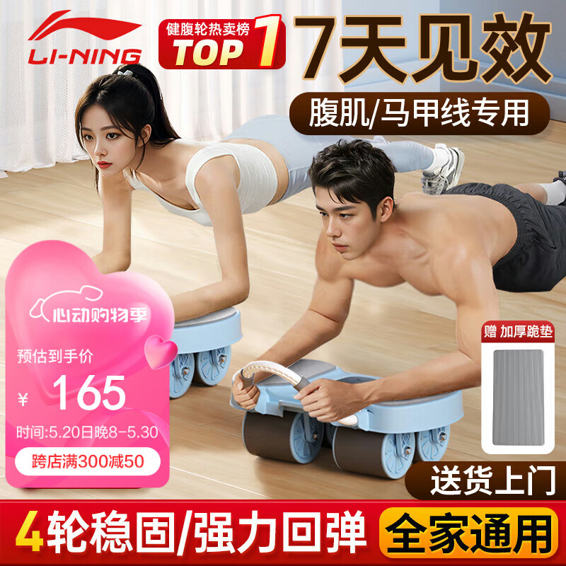 李宁(LI-NING)四轮健腹轮自动回弹家用肘撑腹肌轮男女卷腹两用平板支撑健身器材价格:165.00元!