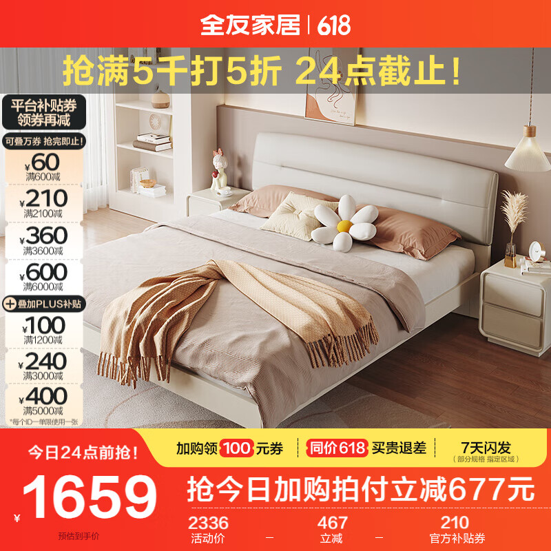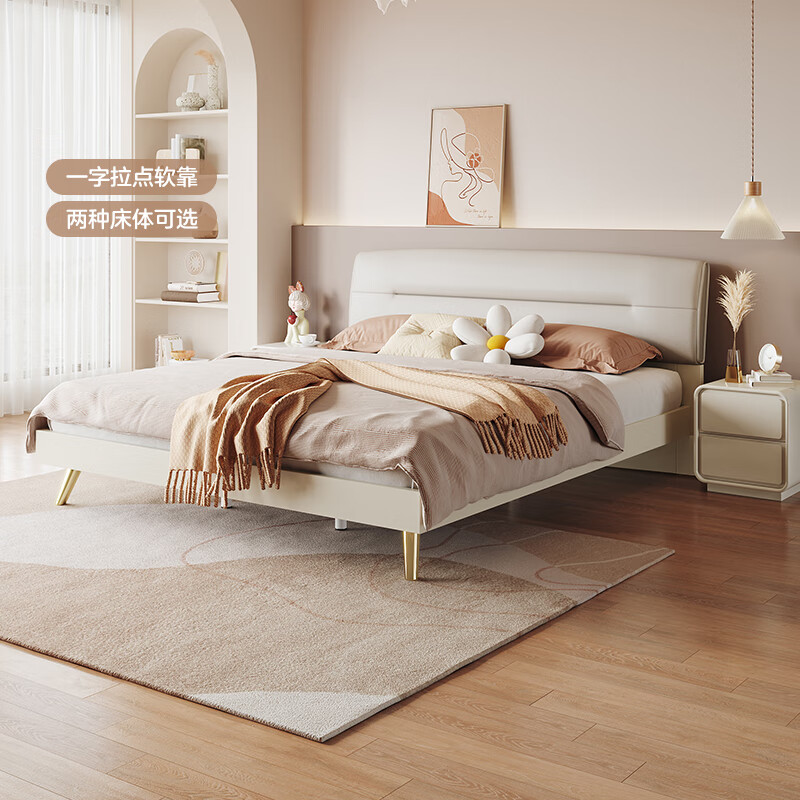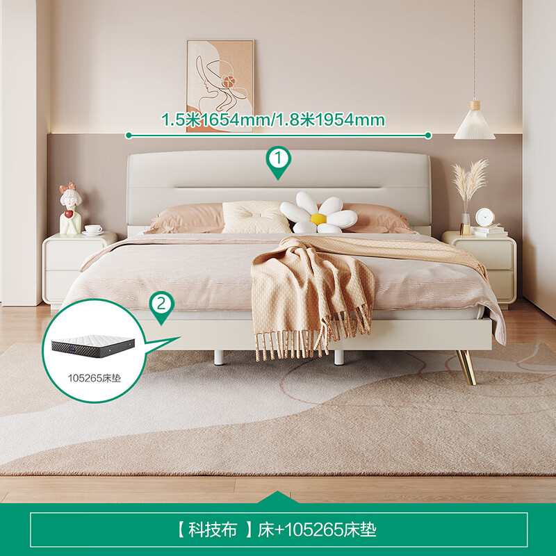 全友家居床现代奶油风科技布软包床轻奢主卧室床1.8x2米双人床DG10001价格:2336.25元!