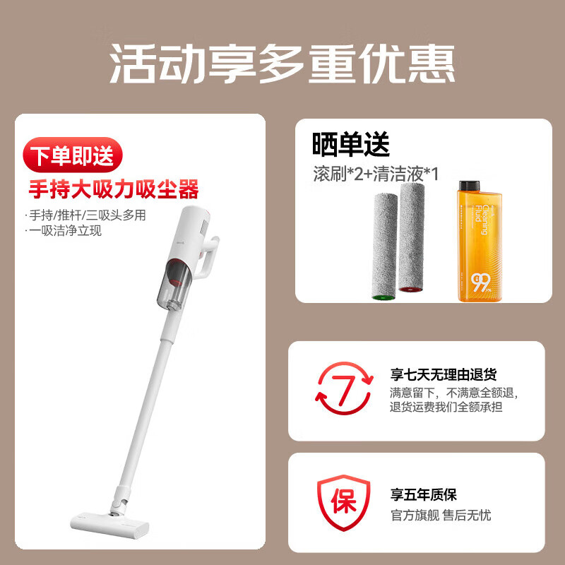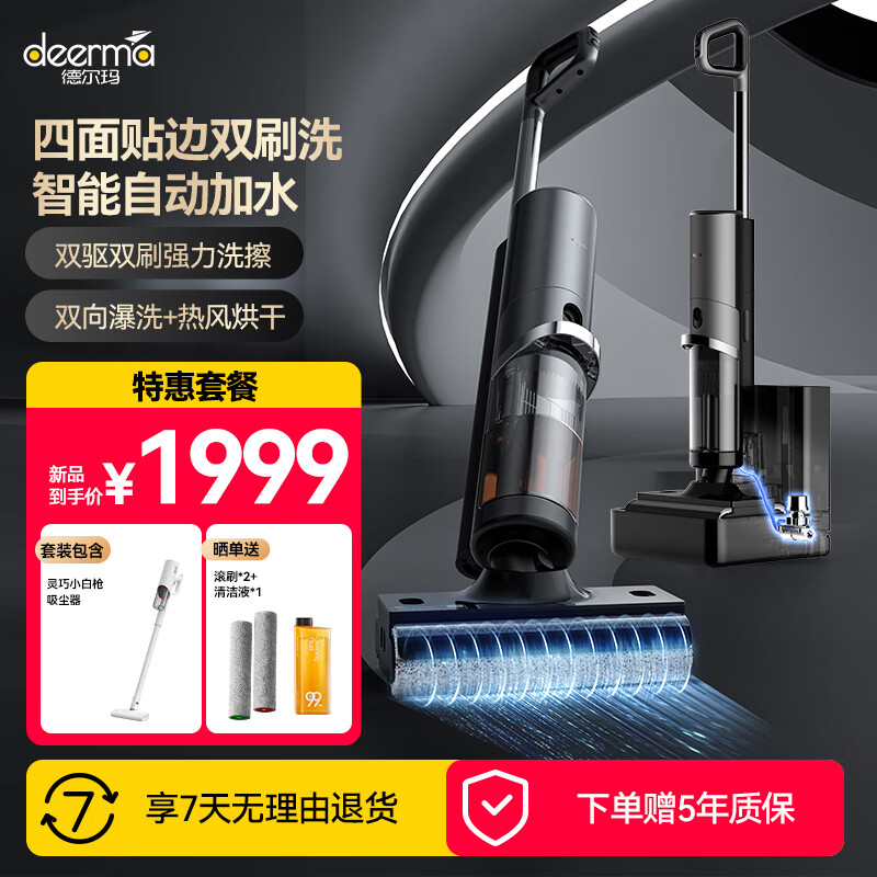 德尔玛(Deerma)P50-Slim洗地机+吸尘器套装版 自动加水双向爆洗自清洁热风烘干洗地 家用吸拖一体吸尘价格:2159.00元!