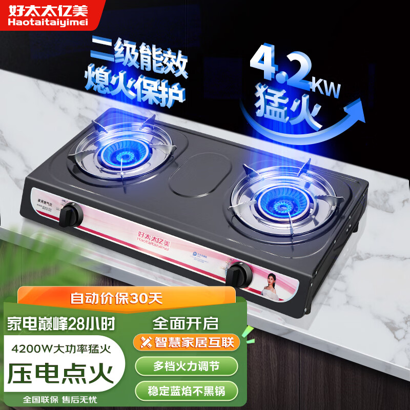 好太太亿美燃气灶台式液化气煤气灶双灶家用双眼燃气灶双炉灶台火力4.2KW猛火台式猛火炉具JZY-HTSD010价格:199.00元!
