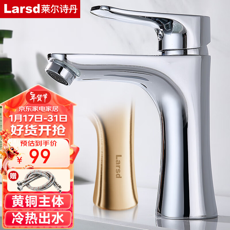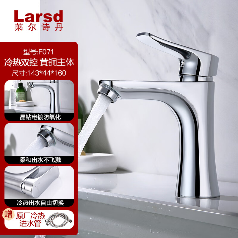 莱尔诗丹(Larsd)面盆水龙头 冷热水卫生间浴室柜黄铜龙头洗脸盆洗手盆龙头F071价格:96.00元!