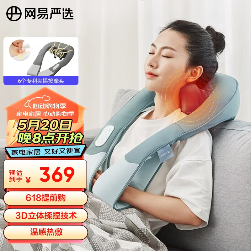 网易严选真3D揉捏 颈椎斜方肌按摩器 按摩披肩肩颈颈部腰部按摩器按摩仪热敷蔚蓝色 生日520情人节礼物价格:399.00元!