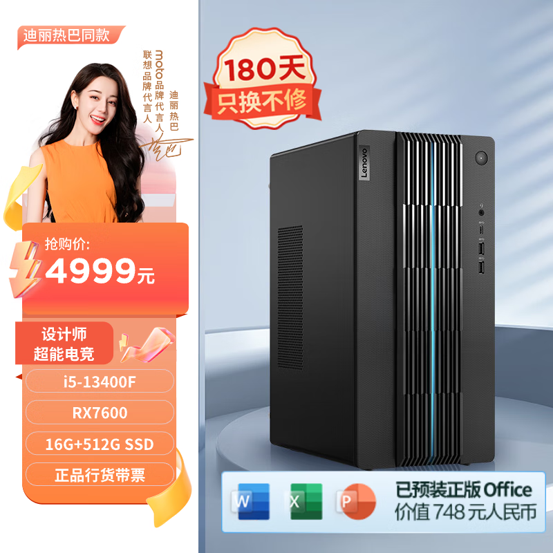 联想(Lenovo)GeekPro设计师游戏台式电脑主机(酷睿13代i5-13400F RX7600 8GB显卡 16G 512G SSD )价格:4999.00元!