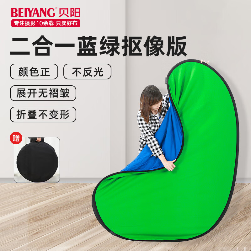 贝阳(beiyang)1.5*2米蓝绿抠像板背景布摄影加厚拍照双面绿幕直播间纯色背景墙抠像布补光灯拍摄道具绿布价格:180.00元!