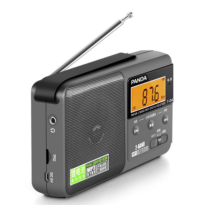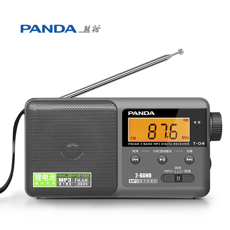 熊猫(panda)T-04 便携式老人插TF卡数字显示锂电池充电半导体收音机(灰色)价格:143.00元!
