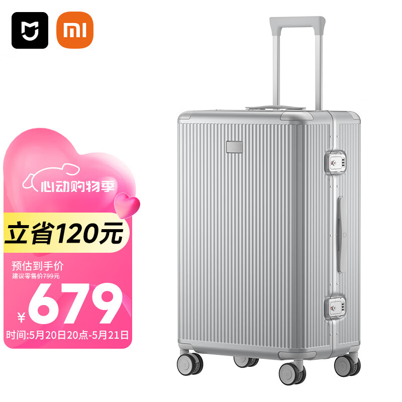 米家小米行李箱26英寸铝框拉杆箱箱大容量旅行箱男女密码箱皮箱子银色价格:679.00元!