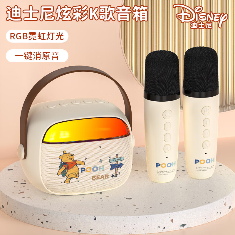 迪士尼(DISNEY)话筒音响一体麦克风k歌音箱自带声卡家庭ktv音响套装无线蓝牙六一儿童节生日礼物娱乐 MK30米黄价格:169.00元!