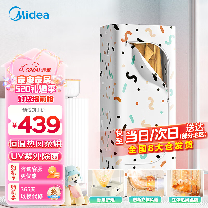 美的(Midea)烘干机家用小型 内衣婴儿衣服紫外线除菌 立体热风柔烘 烘衣烘鞋器 衣物护理干衣机 MHJ70-02VL价格:419.00元!
