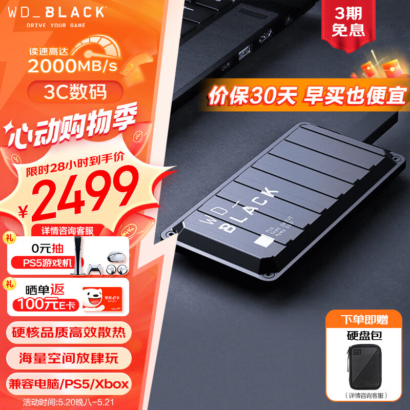 西部数据(WD)4TB NVMe 移动固态硬盘(PSSD)P50 type-c xbox游戏大容量ssd外接手机笔记本存储 2000MB/s价格:2499.00元!