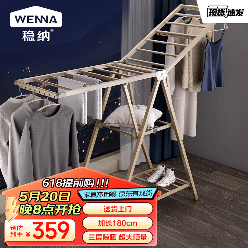 稳纳晾衣架落地铝合金折叠翼型晒衣架阳台晾衣杆凉台晒被子1.8米价格:499.00元!